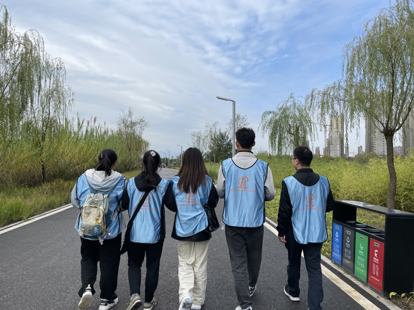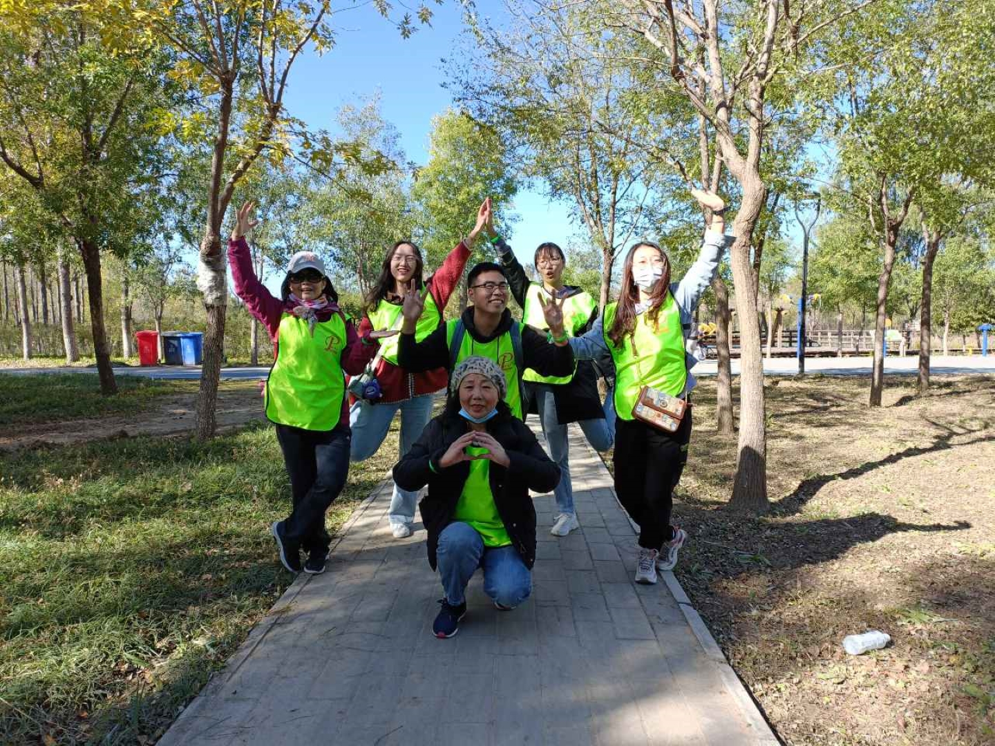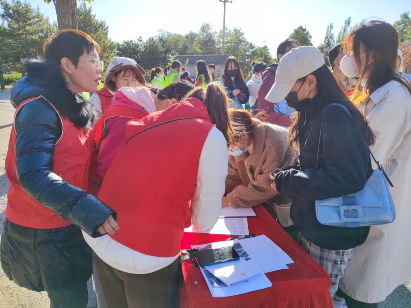 ▲ All team members hold high the team flag, listen to the autumn wind, step on fallen leaves, talk and laugh, and accompany their peers.